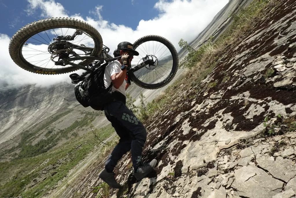 To get there, the mountain biker and his friends had to walk for hours, bike and bags on their backs. The rain overnight only made the situation worse.